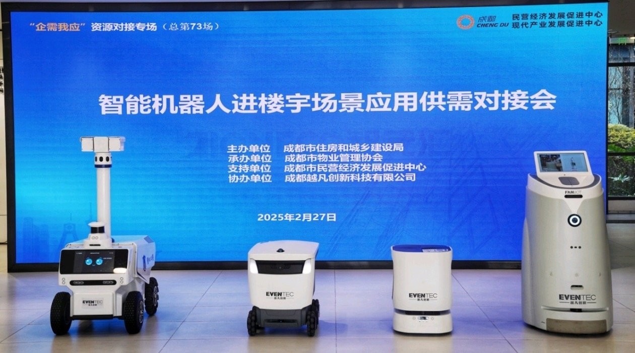 r2月27日,成都市住建局会同市物业管理协会在市民营经济发展促进中心举办“智能机器人进楼宇”场景应用供需对接会。